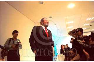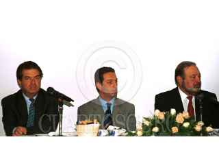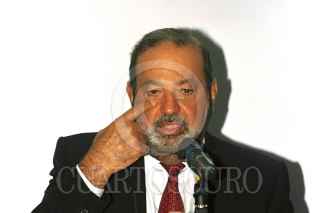 Jaime Chico Pardo, director de Telmex, Carlos Slim Domet, y el empresario Carlos Slim, durante la conferencia que ofreció a los medios de comunicación, en donde explicó con detalle los adelantos de la restauración del centro histórico. FOTO: Eunice Adorno/CUARTOSCURO.COM