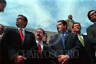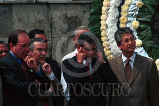 Un grupo priístas, encabezados por Cesar Augusto Santiago, Fidel Herrera Beltrán, entre otros, colocaron una ofrenda en la estatua de Benito Juárez, en la explanda del IFE, donde exigieron al IFE información precisa sobre el financiamiento a la campaña de Vicente Fox. FOTO: Sandra Perdomo/CUARTOSCURO.COM