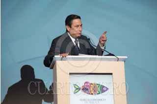 CIUDAD DE MÉXICO, 20SEPTIEMBRE2018.- José Narro Robles, durante la inauguración del Foro Económico de Pesca y Acuacultura 2018, el cual reúne a destacados exponentes de la pesca y acuacultura. Este sector alimentario aportó nacionalmente más de 2.1 millones de toneladas de pescados y mariscos de alto valor nutritivo durante el año 2017. FOTO: MARIO JASSO /CUARTOSCURO.COM