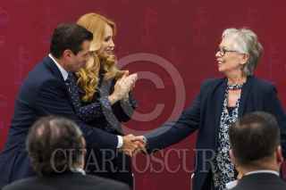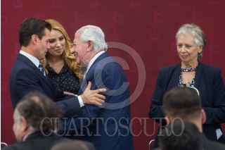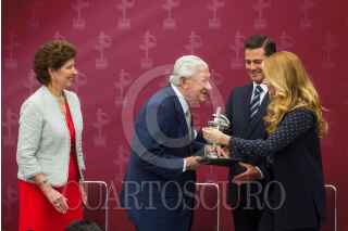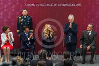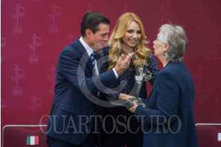 CIUDAD DE MÉXICO, 20SEPTIEMBRE2018.- El presidente Enrique Peña Nieto entregó al primer actor Ignacio López Tarso y a la productora Bertha Navarro recibieron el galardón Luz de Plata, por su trayectoria cinematográfica. En la imagen, con la Primera Dama Angélica Rivera. FOTO: ISAAC ESQUIVEL /CUARTOSCURO.COM