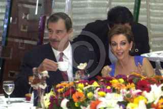 El presidente Vicente Fox, en compañia de su esposa Martha Sahagún, desayuno con personas de la tercera edad en el campo militar Marte. Ahí declaró que durante estos tres años de gobierno no ha tenido errores. Además de su cumpleaños, tambien festejo el segundo aniversario de su boda. FOTO: Juan Pablo Zamora/CUARTOSCURO.COM