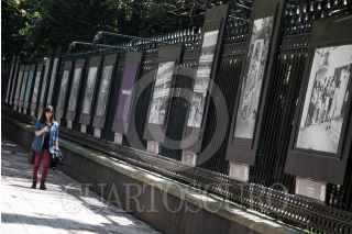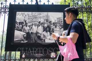 CIUDAD DE MÉXICO, 21SEPTIEMBRE2018.- Inauguran en las rejas de Chapultepec la exposición "1968, el inicio del sueño", donde se observan 52 imagenes de Hector y María García durante las manifestaciones de los movimientos estudiantiles de 1968, así mismo se expusieron en gran formato 52 volantes, como grabados, linóleos y serigrafías, elaborados durante el movimiento estudiantil como parte de la exposición "Gráfica, Movimiento Estudiantil de 1968". FOTO: SAÚL LÓPEZ / CUARTOSCURO.COM