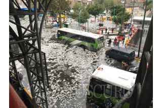 CIUDAD DE MÉXICO, 22SEPTIEMBRE2018.- Debido a la fuerte granizada registrada en la capital se realizó el cerre temporal del sistema de transporte público en las inmediaciones del metro en la estación Oceanía. FOTO: CUARTOSCURO.COM