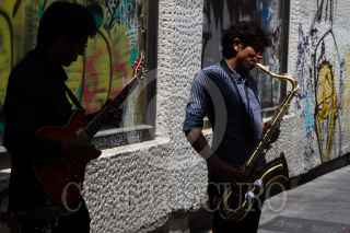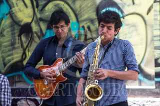 CIUDAD DE MÉXICO, 23SEPTIEMBRE2018.- Una banda de blues inunda de notas musicales la calle de Dolores en el Centro, para el deleite de los paseantes. FOTO: RODRIGO RUBIO / CUARTOSCURO.COM