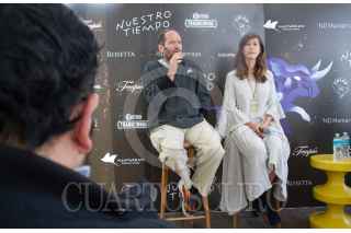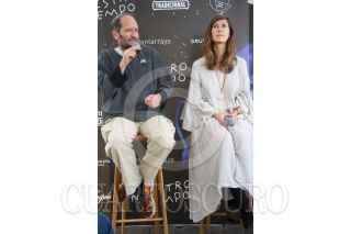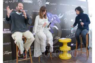 CIUDAD DE MÉXICO, 24SEPTIEMBRE2018.- Carlos Reygadas, cineasta y su esposa Natalia López, junto con Fernanda Solórzano, durante la conferencia de presa de la útlima película de Reygadas "Nuestro Tiempo", que se realizó en el Hotel Condesa, este medio día. FOTO: VICTORIA VALTIERRA /CUARTOSCURO.COM