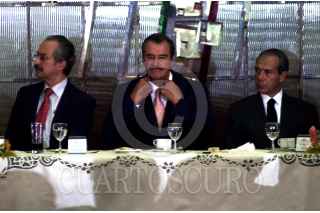 Vicente Fox platica con el presidente saliente de la CANACAR, durante la toma de protesta de los nuevos directivos esta cámara en el Campo Militar Marte, atestigua el secretario de Comunicaciones y Transportes, Pedro Cerisola. FOTO: Juan Pablo Zamora/CUARTOSCURO.COM