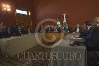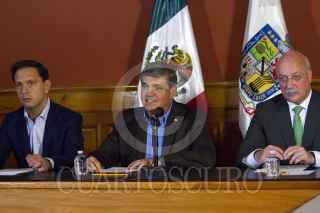 MONTERREY, NUEVO LEÓN, 25SEPTIEMBRE2018.- Directivos de los equipos de los clubes Tigres y Monterrey ofrecieron una rueda de prensa junto a Gobierno del estado en donde anunciaron que las marchas y caravanas que se realizan en las inmediaciones de los estadios quedaron prohibidas, así como la entrada de las barras visitantes. El presidente de la Liga MX, Enrique Bonilla anunció que los estadios pueden operar de manera correcta. FOTO: GABRIELA PÉREZ MONTIEL /CUARTOSCURO.COM
