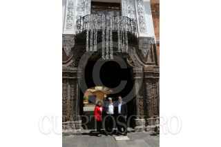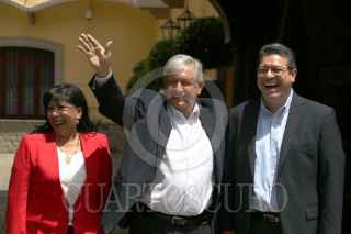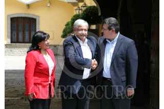 TLAXCALA TLAXCALA, 25SEPTIEMBRE2018.- Andrés Manuel López Obrador, presiente electo de México acompañado de Marco Antonio Mena, gobernador del estado y Anabel Avalos, presidenta municipal, a su llegada al palacio de gobierno del estado donde sostivieron una reunion de trabajo. FOTO: SAÚL LÓPEZ /CUARTOSCURO.COM
