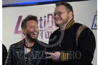 CIUDAD DE MÉXICO, 25SEPTIEMBRE2018.- La banda mexicana Camila, conformada por Pablo Hurtado y Mario Domínguez Zarzar, junto con los integrantes de la banda Sin Bandera, Noel Schajris y Leonel García, presentaron su más reciente gira musical "4 latidos tour", que arrancó en Estados Unidos y que el próximo 9 de noviembre llegará a la Arena Ciudad de México. Además ambos duetos adelantaron que trabajan en un proyecto discográfico que saldrá el próximo año. FOTO: MARIO JASSO /CUARTOSCURO.COM