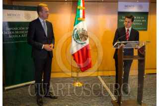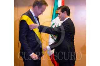 NUEVA YORK, ESTADOS UNIDOS, 25SEPTIEMBRE2018.- El presidente Enrique Peña Nieto, impuso la Condecoración de la Orden Mexicana del Águila Azteca, en Grado de Banda, a Børge Brend, Presidente del Foro Económico Mundial, previo a su participación en la Cumbre del Foro Económico Mundial sobre el Impacto del Desarrollo Sostenible. FOTO: PRESIDENCIA /CUARTOSCURO.COM
