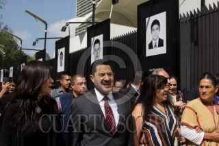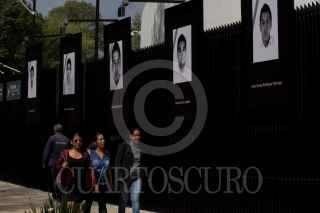 CIUDAD DE MÉXICO, 25SEPTIEMBRE2018.- Fue inaugurada la exposición fotográfica “Desaparición Forzada” con motivo de los cuatro años de la desaparición de los 43 normalista de Ayotzinapa. La muestra cuenta con los retratos de los 43 estudiantes y son expuestas a lo largo de las rejas del Senado, sobre Paseo de la Reforma. FOTO: GALO CAÑAS /CUARTOSCURO.COM