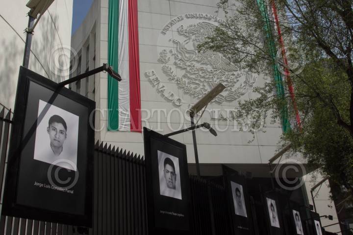 CIUDAD DE MÉXICO, 25SEPTIEMBRE2018.- Fue inaugurada la exposición fotográfica “Desaparición Forzada” con motivo de los cuatro años de la desaparición de los 43 normalista de Ayotzinapa. La muestra cuenta con los retratos de los 43 estudiantes y son expuestas a lo largo de las rejas del Senado, sobre Paseo de la Reforma. FOTO: GALO CAÑAS /CUARTOSCURO.COM