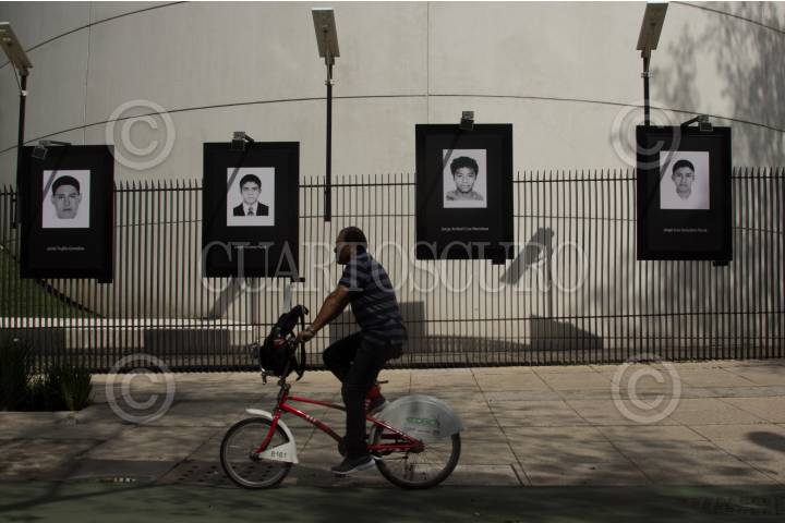 CIUDAD DE MÉXICO, 25SEPTIEMBRE2018.- Fue inaugurada la exposición fotográfica “Desaparición Forzada” con motivo de los cuatro años de la desaparición de los 43 normalista de Ayotzinapa. La muestra cuenta con los retratos de los 43 estudiantes y son expuestas a lo largo de las rejas del Senado, sobre Paseo de la Reforma. FOTO: GALO CAÑAS /CUARTOSCURO.COM