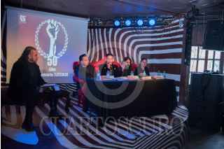 CIUDAD DE MÉXICO, 26SEPTIEMBRE2018.- Cristhian Chavero López, director de la revista Sangre y Cenizas, y Ricardo Demencia, organizador de Octubre Negro, realizaron la presentación oficial de la 10 edición del Festival Cultural Octubre Negro, el cual tendrá como temática principal la conmemoración de los 50 años del Movimiento Estudiantil de 1968. Además se rendirá homenaje a Nacha Rodríguez, última mujer sobreviviente del Cómite Estudiantil del 68. El festival contará con diversas actividades en distintas sedes como: el Centro Cultural Venustiano Carranza, el tianguis del Chopo y el Zócalo capitalino, del 5 de octubre al 3 de noviembre. FOTO: MARIO JASSO /CUARTOSCURO.COM