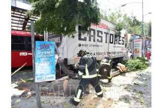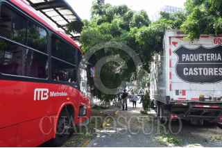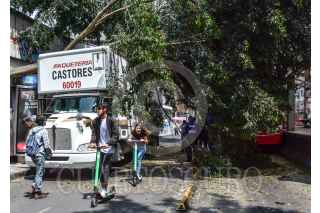 CIUDAD DE MÉXICO, 26SEPTIEMBRE2018.- Un camión de paquetería se atoró con una rama de un árbol provocando su caída, ésto sobre la avenida Insurgentes al cruce con la calle de Durango en la colonia Roma Norte. FOTO: ARMANDO MONROY /CUARTOSCURO.COM