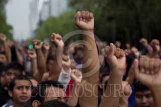 CIUDAD DE MÉXICO, 26SEPTIEMBRE2018.- Con motivo del cuarto aniversario de la desaparición de los 43 normalistas de Ayotzinapa, miles de personas marcharon del Ángel de la Independencia al Zócalo capitalino para exigir justicia y la presentación con vida de los estudiantes, así como sanción a los responsables. FOTO: GALO CAÑAS /CUARTOSCURO.COM