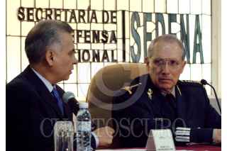 En conferencia de prensa el secretario de la Defensa Nacional, Clemente Vega y el Procurador General de la República, Rafael Macedo de la Concha que en un operativo realizado en Guadalajara el Ejército mexicano capturó a Armando Valencia Cornelio alias "Juanito", el líder del cártel de los Valencia que operaba en Jalisco, Michoacán y Colima. FOTO: Nelly Salas/CUARTOSCURO.COM