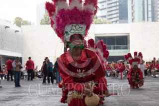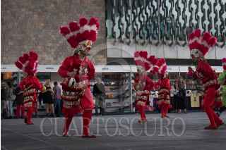 CIUDAD DE MÉXICO, 27SEPTIEMBRE2018.- Se inauguró la vigésima novena edición de la Feria Internacional del Libro de Antropología e Historia, en la explanada del Museo Nacional de Antropología, durante su inauguración se llevaron a cabo distintas actividades culturales, entre ellas la danza de Matlachines de Ojocaliente Zacatecas, la cual representa la lucha entre chichimecas contra españoles. FOTO: MAGDALENA MONTIEL /CUARTOSCURO.COM