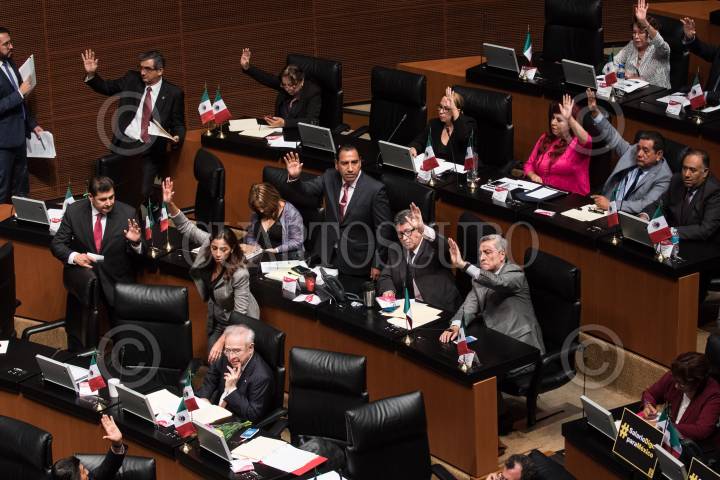 CIUDAD DE MÉXICO, 27SEPTIEMBRE2018.- Momento en que senadores de la bancada de Morena emiten su voto durante la sesión rodinaria del Senado de la Repúbñica. FOTO: MISAEL VALTIERRA /CUARTOSCURO.COM