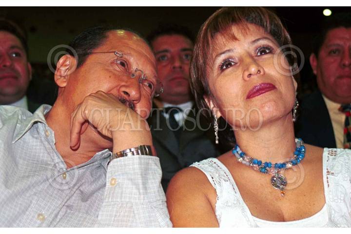 Margarito Yánez Ramos (ex presidente municipal de San Salvador Atenco) abraza a Héctor López Castillo, quien será el nuevo presidente interino del municipio de San Salvador Atenco, Estado de México. FOTO: Iván Stephens/CUARTOSCURO.COM