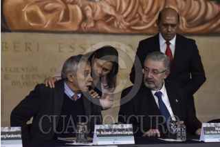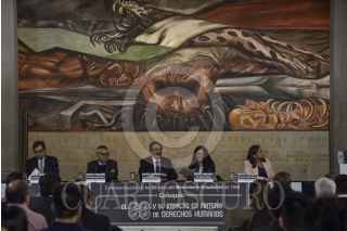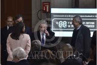 CIUDAD DE MÉXICO, 28SEPTIEMBRE2018.- El politólogo José Woldenberg Karakowsky; Rolando Cordera Campos, coordinador del Programa Universitario de Estudios de Desarrollo de la UNAM; Luis María Aguilar, presidente de la Suprema Corte de Justicia de la Nación (SCJN); la escritora Sandra Lorenzano y Leticia Bonifaz, directora general de estudios de Promoción y Desarrollo de los Derechos Humanos de la SCJN, durante la realización del Coloquio “El 68 y su impacto en materia de derechos humanos” llevada a cabo en el área de murales de la SCJN. FOTO: MARIO JASSO /CUARTOSCURO.COM