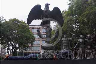 CIUDAD DE MÉXICO, 01OCTUBRE2018.- Un hombre duerme al pie de la escultura que narra la fundación del Imperio México-Tenóchtitlan, ubicado frente a la Suprema Corte de Justicia de la Nación. FOTO: MOISÉS PABLO /CUARTOSCURO.COM