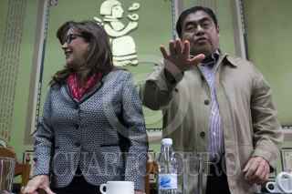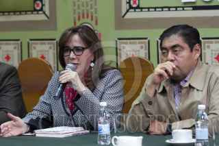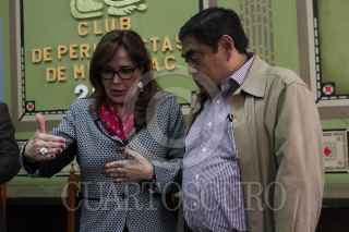 CIUDAD DE MÉXICO, 01OCTUBRE2018.- Yeidckol Polevnsky, dirigente nacional de Morena, y Miguel Barbosa, candidato a la gubernatura de Puebla, ofrecieron una conferencia de prensa en la cual señalaron diversas irregularidades en el proceso electoral, responsabilizando al PAN y a su candidata Martha Erika Alonso de todas ellas. FOTO: MOISÉS PABLO /CUARTOSCURO.COM
