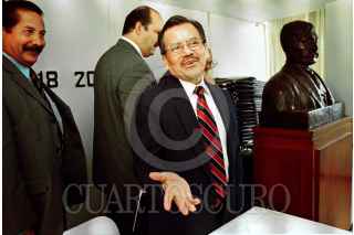 Heladio Rámirez López, presidente de la Confederación Nacional Campesina, (al centro), durante la reunión realizada esta mañana en las instalaciones de dicha confederación. FOTO: Sandra Perdomo/CUARTOSCURO.COM