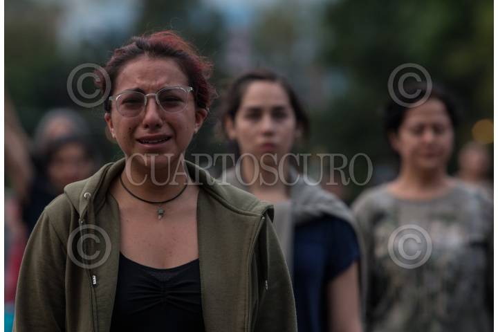 CIUDAD DE MÉXICO, 01OCTUBRE2018.- Con motivo del 50 aniversario luctuoso del ataque a estudiantes y maestros en Tlatelolco. Vecinos, sobrevivientes, jóvenes estudiantes y maestros, se reunieron en la Plaza de las Tres Culturas para guardar el lapso de una hora de silencio mirando hacía el edificio Chihuahua. Después realizaron un performance donde representaron como las víctimas fueron cayendo en la explanada por las heridas de bala. FOTO: ANDREA MURCIA /CUARTOSCURO.COM