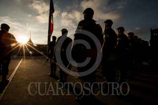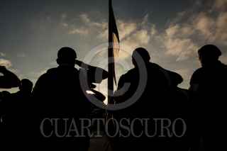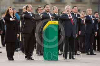 CIUDAD DE MÉXICO, 02OCTUBRE2018.- Con motivo del 50 aniversario del 02 de Octubre, legisladores realizaron una guardia tras el iza miento de bandera, a media asta, en el Zócalo capitalino. La guardia estuvo encabezada por Martí Batres Guadarrama, presidente del Senado de la República; Alfonso Navarrete Prida, secretario de Gobernación; Dolores Padierna, diputada morenista, y Luis Maria, ministro presidente de la Suprema Corte de Justicia de la Nación. FOTOS: GALO CAÑAS /CUARTOSCURO.COM
