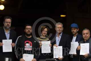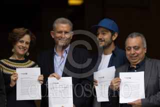 CIUDAD DE MÉXICO, 02OCTUBRE2018.- Ernesto López Portillo, fundador y Director Ejecutivo del Instituto para la Seguridad y la Democracia, A.C.; Alfredo Lecona, ex vocero del movimiento 132; Denise Dresser, periodista; Pablo Girault, consejero de México Unido Contra la Delincuencia; Diego Luna, actor, y Juan Martín Pérez Director Ejecutivo de Redim y Secretario Ejecutivo de Redlamyc, acudieron a la Suprema Corte de Justicia de la Nación (SCJN) para hacer entrega de una iniciativa para la ley de Seguridad interior. FOTOS: GALO CAÑAS /CUARTOSCURO.COM