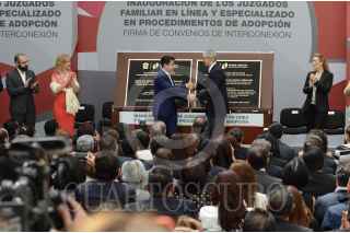 TOLUCA, ESTADO DE MÉXICO, 02OCTUBRE2018.- El Gobierno del Estado de México y el Tribunal Superior de Justicia del Edomex inauguraron el Juzgado Especializado en Adopciones, el primero en su tipo a nivel nacional y el Juzgado Familiar en Línea, y atestiguaron la firma de convenio entre el TSJEM y dependencias como el Registro Civil, el IFREM y el Instituto de la Defensoría Pública. FOTO: ARTEMIO GUERRA BAZ / CUARTOSCURO.COM
