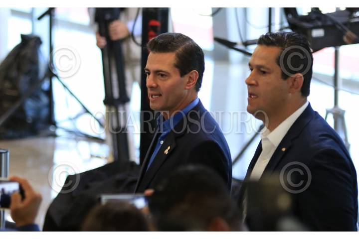 GUANAJUATO, GUANAJUATO, 02OCTUBRE2018.- Enrique Peña Nieto, Presidente de México; Diego Sinhue RodrÍguez Vallejo, gobernador del estado, y Laura Díez Barroso Azcárraga, presidenta del consejo de Administración de GAP, durante la inauguración de la ampliación y modernización del Aeropuerto Internacional de Guanajuato. FOTO: GUSTAVO BECERRA /CUARTOSCURO.COM
