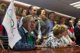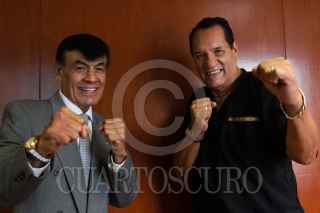 CIUDAD DE MÉXICO. 03OCTUBRE2018.- Agustín Zaragoza, y Joaquín Rocha, ambos boxeadores medallistas de bronce en los Juegos Olímpicos de 1968, durante la presentación del documental "Los Juegos Olímpicos de México 68 Memorias Imborrables", el cual es producido por Alejandro Reyes y será transmitido por Canal 14, del 12 al 27 de octubre, realizada en las instalaciones del Comité Olímpico Mexicano (COM). FOTO: MOISÉS PABLO /CUARTOSCURO.COM