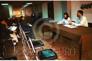 Liza Covantes, coordinadora de la campaña de ingeniería genética de Greenpeace, y Alejandro Calvillo, director general de Greenpeace ofrecieron una conferencia de prensa para hablar sobre la contaminación transgénica del maíz mexicano. FOTO: Eunice Adorno/CUARTOSCURO.COM
