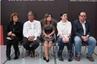 SALTILLO, COAHUILA, 04OCTUBRE2018.- Ayer se llevó a cabo la premiación del Concurso Nacional de Fotografía Los Derechos Humanos 2018, convocado por la Secretaría de Cultura del estado, la Comisión Nacional de los Derechos Humanos y Cuartoscuro. El jurado del certamen, conformado por Pedro Valtierra, Frida Hartz y Carlos Arredondo Sibaja; además de Irene Spigno, secretaria académica de la Academia Interamericana de Derechos Humanos y la secretaria de Cultura, Ana Sofía García Camil, entregaron los premios a los ganadores. FOTO: ESPECIAL/ CUARTOSCURO.COM