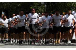 CIUDAD DE MÉXICO, 04OCTUBRE2018.- Soldados se ponen en forma en las inmediaciones del Bosque de Chapultepec, uno de los pulmones de la capital. FOTO: MOISÉS PABLO /CUARTOSCURO.COM