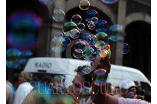 CUERNAVACA, MORELOS, 04OCTUBRE2018.- Un vendedor de burbujas ofrece su producto en el zócalo de la ciudad. FOTO: MARGARITO PÉREZ RETANA /CUARTOSCURO.COM