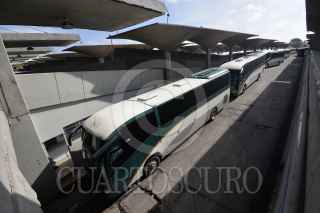 TOLUCA, ESTADO DE MÉXICO, 05OCTUBRE2018.- La líneas de transporte foráneo Flecha Roja y TEO suspendieron las corridas a Tenancingo de forma indefinida, ante la problemática que se presenta con los estudiantes de la Normal de Tenería, después de que secuestraron 57 autobuses y a sus operadores y destruyeran 17 más, miembros de CANAPAT exigieron garantías para poder continuar prestando el servicio. FOTO: ARTEMIO GUERRA BAZ /CUARTOSCURO.COM