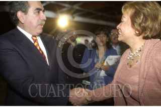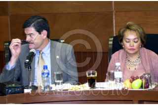 Francisco Barrio y Elba Esther Gordillo, líderes parlamentarios del PAN y PRI respectivamente, durante la reunión de los próximos líderes parlamentarios de San Lázaro. FOTO: Juan Pablo Zamora/CUARTOSCURO.COM