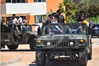 TELOLOAPAN, GUERRERO, 05OCTUBRE2018.- Salvador Cienfuegos Zepeda, secretario de la Defensa Nacional, en compañía de Héctor Antonio Astudillo Flores, gobernador del Estado de Guerrero, encabezó la Ceremonia de Inauguración de las instalaciones del 41/o. Batallón de infantería y su Unidad Habitacional. Las Instalaciones inauguradas tienen por objeto mejorar las condiciones de alojamiento del personal militar acantonado en esta jurisdicción, contando con conjunto arquitectónico de utilidad militar conformado por una comandancia, patio de honor, alojamientos, comedor, depósitos, servicio médico, stand de tiro, canchas deportivas; así como una Unidad Habitacional Militar. FOTO: SEDENA /CUARTOSCURO.COM