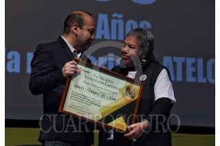 CIUDAD DE MÉXICO, 05OCTUBRE2018.- El centro cultural de la delegación Venustiano Carranza se convirtió en la cede del festival Octubre Negro, en la que, en esta edición se dedicó a los 50 años del movimiento estudiantil del 68, ofreciendo reconocimiento a Ignacia Rodriguez Márquez, alias “La Nacha Rodríguez”, sobreviviente del comité 68. El evento presidió Ricardo González, organizador del festival y Julio César Moreno, alcalde de la delegación. Octubre Negro tendrá muestras de cine, música, literatura que terminará hasta el 03 noviembre del año en curso. FOTO: ANDREA MURCIA /CUARTOSCURO.COM