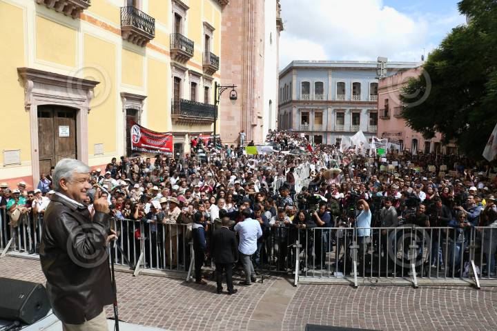 ZACATECAS, ZACATECAS, 07OCTUBRE2018.- Andrés Manuel López Obrador, presidente electo de Mexico, se reunió con habitantes de Zacatecas en la palzuela Miguel Auza donde dio a conocer su propuesta de gobierno. FOTO: SAÚL LÓPEZ /CUARTOSCURO.COM