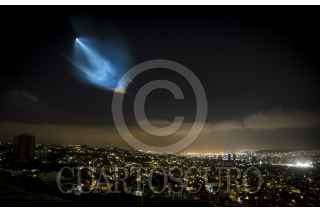TIJUANA, BAJA CALIFORNIA, 07OCTUBRE2018.- Esta tarde fue lanzado hacia el espacio en punto de las 19:21 horas el cohete Falcon 9 de la empresa SpaceX desde la base aérea de Vandenberg en California, Estados Unidos. El cohete pudo observarse desde San Diego, California, y de algunas ciudades del norte de México. FOTO: OMAR MARTÍNEZ /CUARTOSCURO.COM