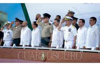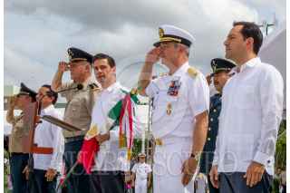 ISLA MUJERES, QUINTANA ROO, 09OCTUBRE2018.- El presidente Enrique Peña Nieto, y Salvador Cienfuegos Zepeda, secretario de la Defensa Nacional, encabezaron la inauguración de la 10ª Brigada de Policía Militar y su Unidad Habitacional, así como el Campus Cancún de la Universidad de Quintana Roo. FOTO: PRESIDENCIA /CUARTOSCURO.COM