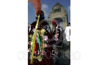 Niñas de Milpa Alta caminan a hacia la explanada del monumento a la Revolución. Ahí el PRI capitalino rindió homenaje a Silvia Pinal y José Luis Cuevas con un festival de danzas indigenas y bailables tradicionales. FOTO: Juan Pablo Zamora/CUARTOSCURO.COM