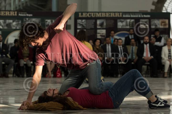 CIUDAD DE MÉXICO, 10OCTUBRE2018.- Estudiantes del Centro Universitario de Teatro realizaron un perfomance con la temática de movimientos estudiantes, previo a la declaratoria M68: Archivo sin reservas, encabezada por Mercedes de Vega, directora del Archivo General de la Nación, Enrique Graue Wiechers, rector de la UNAM, y Francisco Javier Acuña, director del Instituto Nacional de Acceso a la Información. FOTO: GALO CAÑAS /CUARTOSCURO.COM