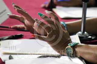 CUERNAVACA, MORELOS, 10OCTUBRE2018.- Detalle de las manos de la diputada del Partido Nueva Alianza, Blanca Nieves Sánchez Arano, durante la reunión de la comisión de educación que ella preside con estudiantes universitarios quienes exigieron que ayuden en la crisis económica que vive la Universidad Autónoma del Estado, la cual se encuentra en huelga por parte del sindicato de trabajadores académicos desde hace tres semanas. Aproximadamente 46 mil estudiantes no tienen clases. FOTO: MARGARITO PÉREZ RETANA /CUARTOSCURO.COM
