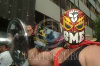 A las afueras del sindicato Mexicano de Electricistas se encontraba super SME apoyando a los integrantes del sindicato electricistas. FOTO: Nelly Salas/CUARTOSCURO.COM