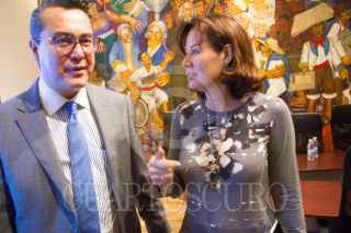 CIUDAD DE MÉXICO, 10OCTUBRE2018.- Guillermo Orozco se reunió con Irene Muñoz del equipo de la jefa del Gobierno capitalino, Claudia Sheinbaum, en el salón murales del palacio del H. Ayuntamiento. FOTO: VICTORIA VALTIERRA /CUARTOSCURO.COM